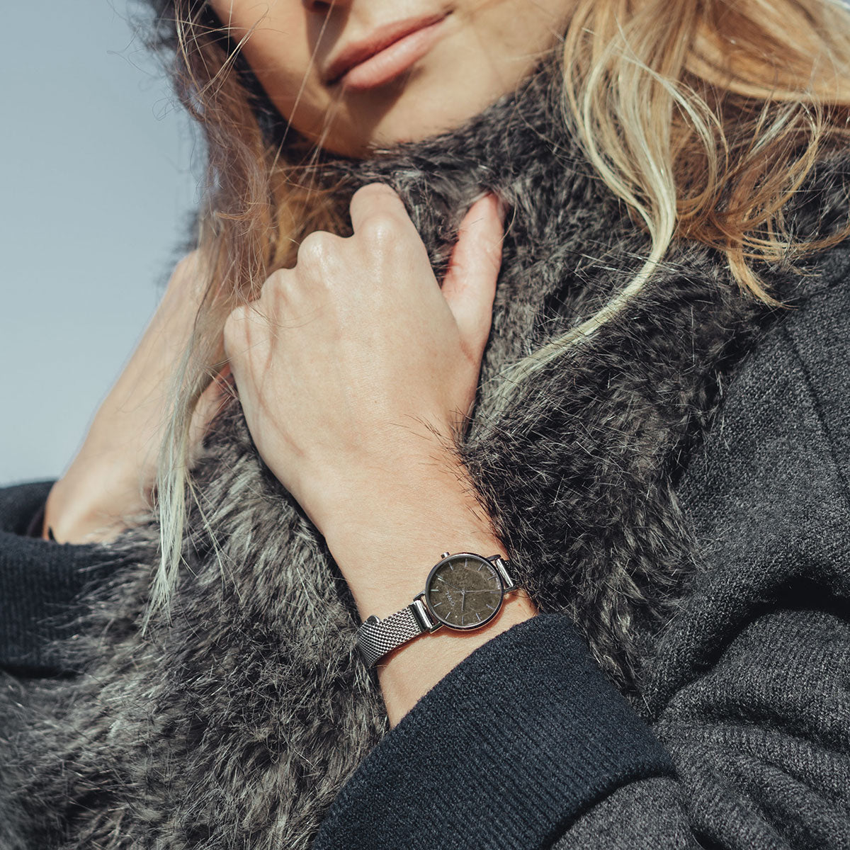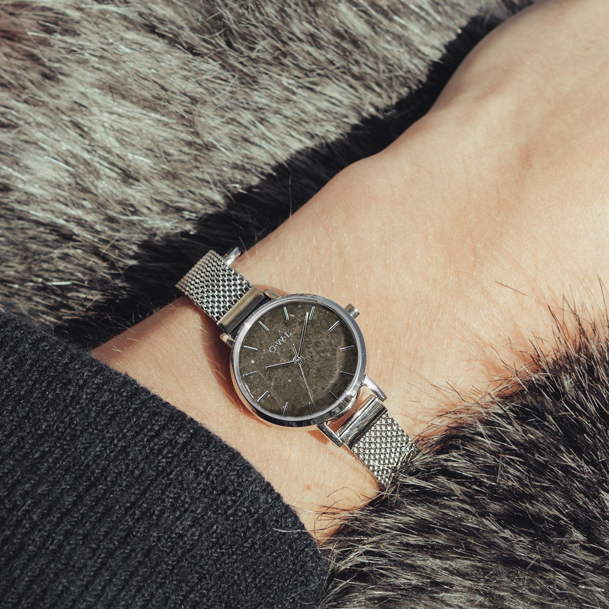 Amesbury Silver mesh watch with a Grey Marble Dial