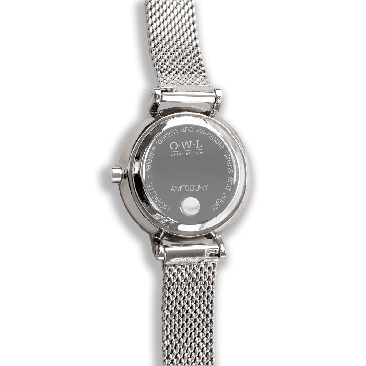 Amesbury Silver mesh watch with a genuine Howlite Dial