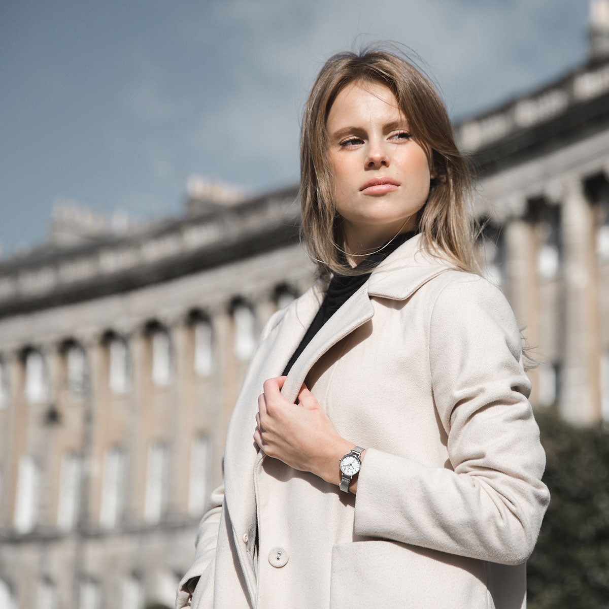 A specially selected slim Japanese Miyota movement from Citizen ensures that the Amesbury feels light and feminine, while allowing for the back of the case to be set with a piece of stone that stays in contact with the skin, as well as an inscription of its natural healing properties.